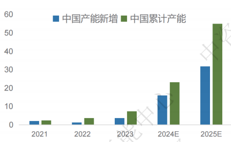 圖1:2021-2025年中國綠氫項目新增產能(噸/年)