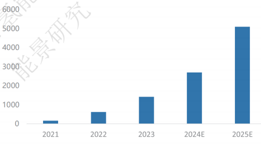 圖2:2021-2025年中國綠氫項目電解槽需求(MW)