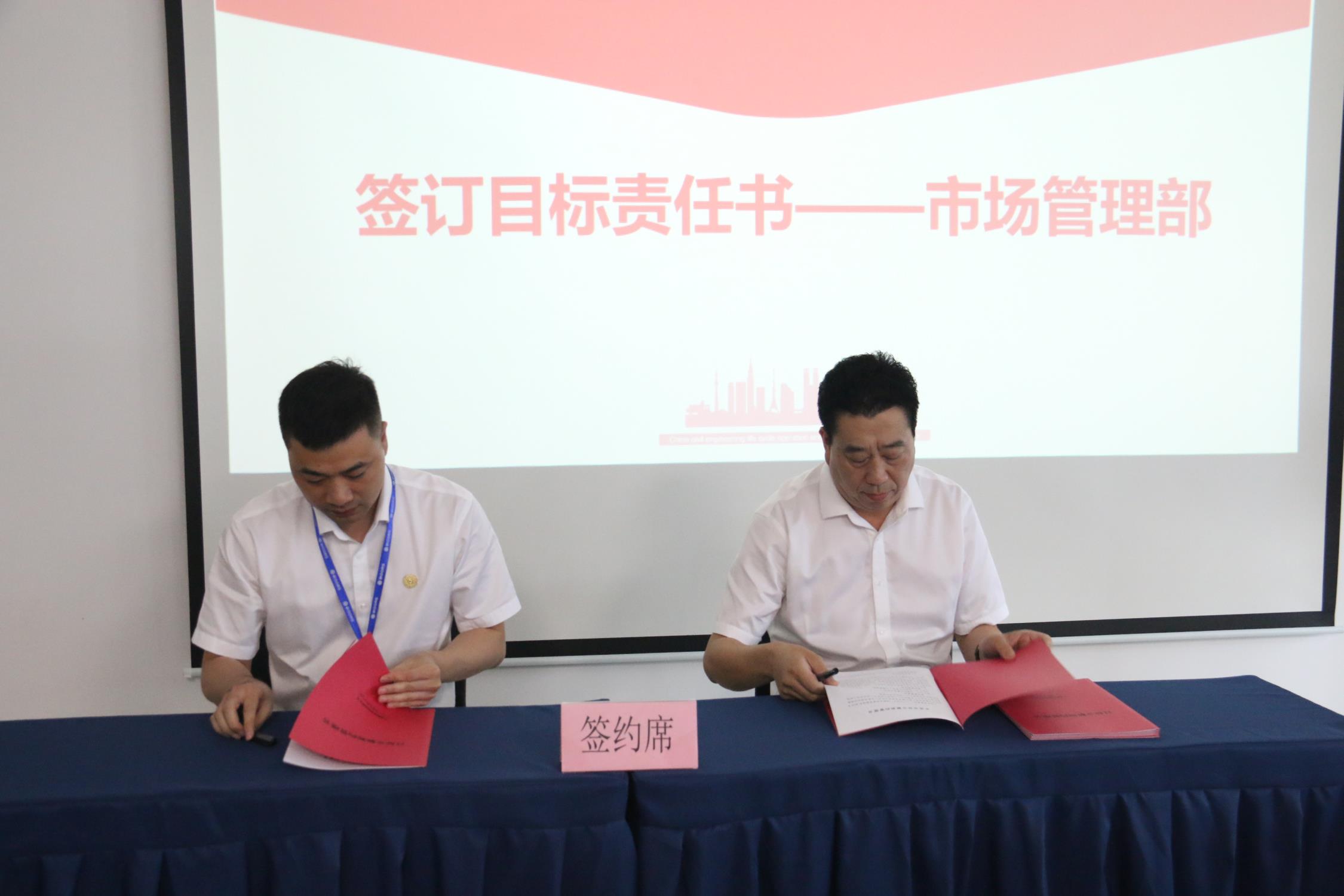 會議首先聽取了集團總裁助理對上半年工作的總結,并根據年度績效考核指標,分析了核心工作完成情況并下達了下半年度核心工作內容。隨后,董事長盛星樂根據核心工作指標與建筑工程板塊部門負責人簽訂《目標責任書》。