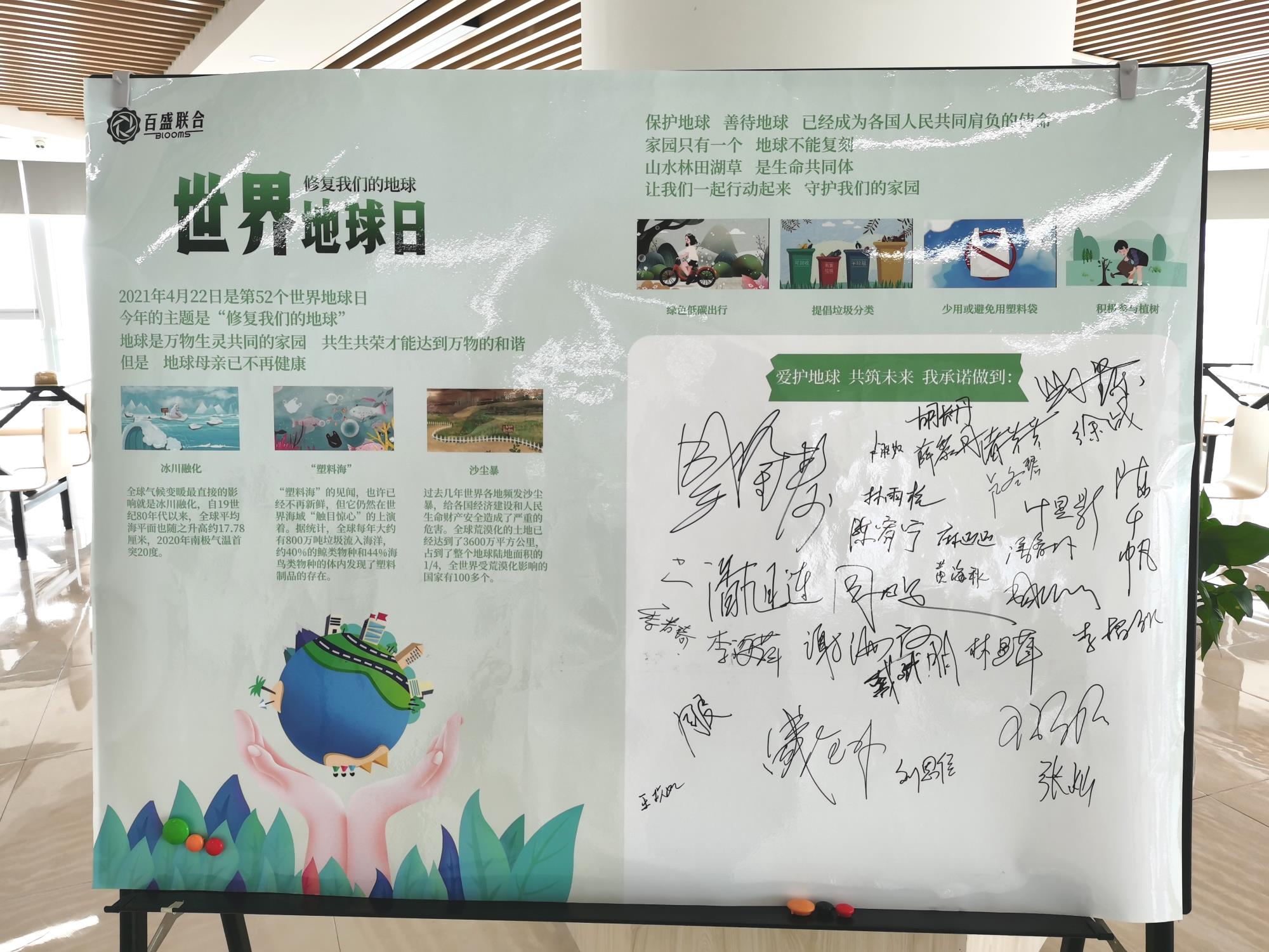 在集團(tuán)總部,員工在“愛護(hù)地球 共筑未來”公約上簽字,并鄭重承諾,齊心協(xié)力以實際行動響應(yīng)環(huán)保號召,自覺踐行綠色環(huán)保措施。