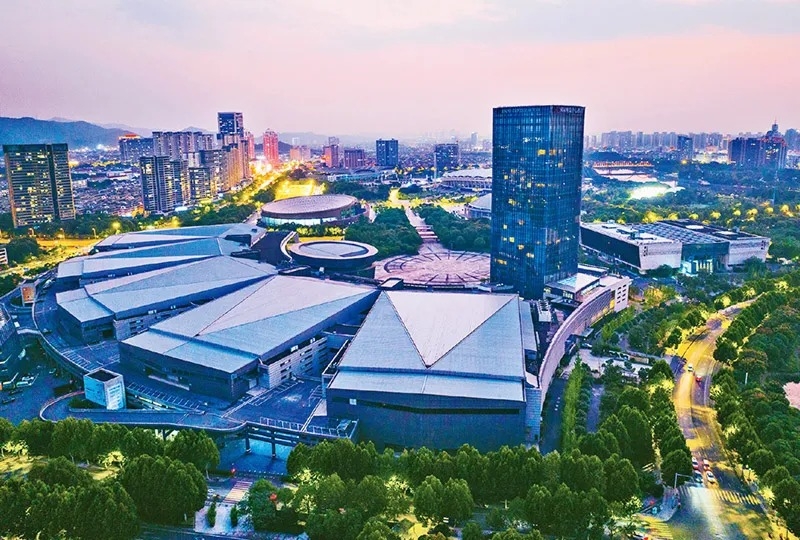 義烏是民營經濟大市,是浙江首個、全國第二個在冊市場經營主體數量突破百萬的縣域,被譽為“世界小商品之都”。圖為2024年10月9日拍攝的暮色下的義烏。 新華社記者 翁忻旸/攝