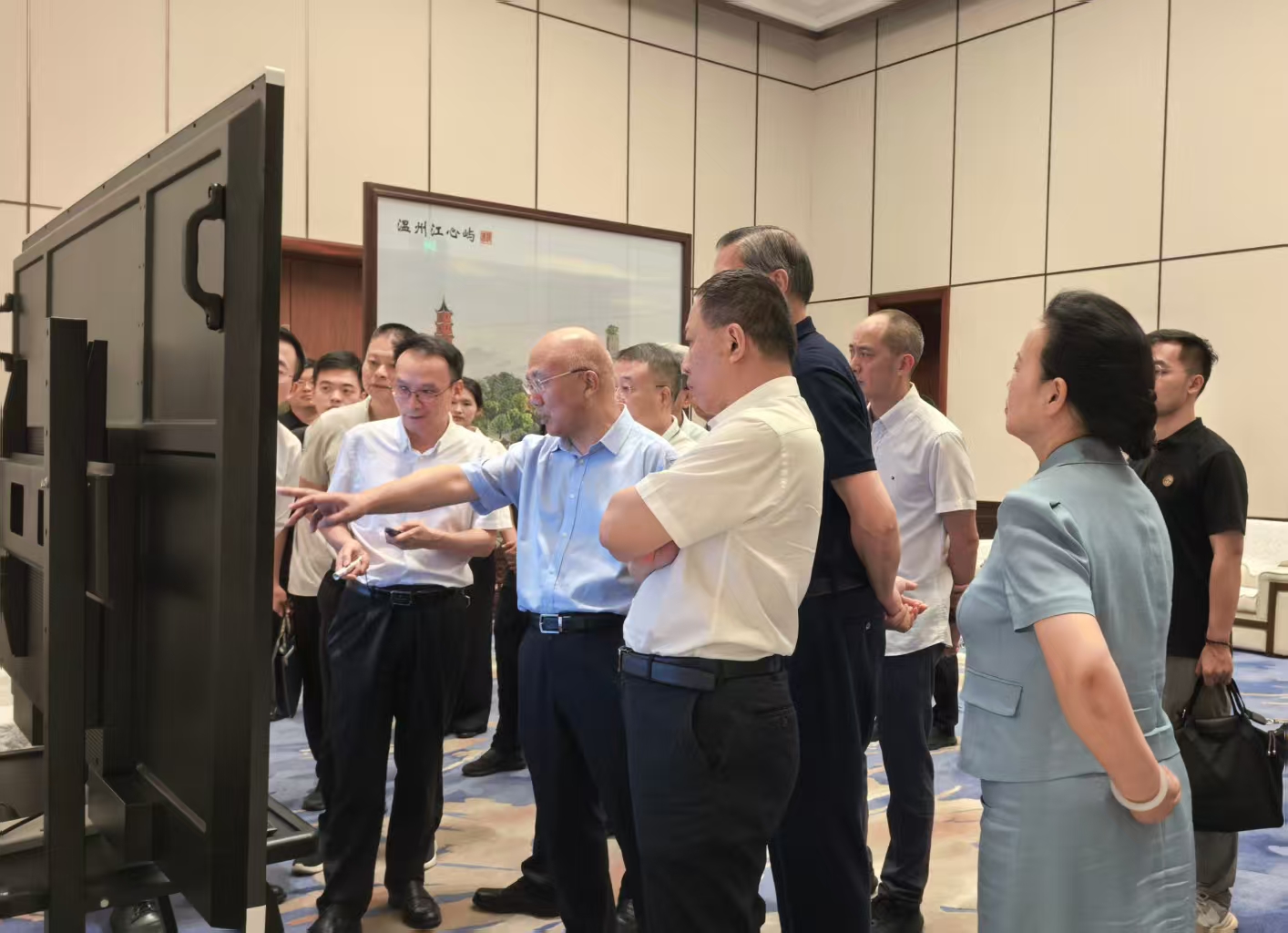 9月1日,浙江省人民政府決策咨詢委員會副主任兼秘書長孟剛率考察團赴百盛聯合集團,調研民營社會資本參與高鐵等重大基礎設施建設運營情況。溫州市人民政府副市長王振勇,溫州市決咨委主任余梅生、副主任胡劍謹等陪同調研。