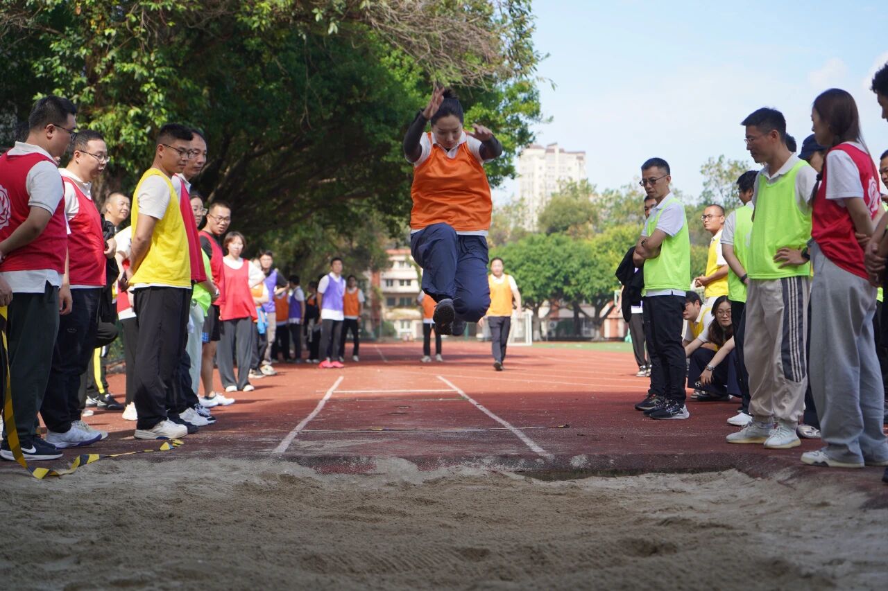 跳遠賽場上,運動員們助跑、起跳、落地,動作一氣呵成,輕盈的身影在空中劃出優美弧線,盡顯體育運動的力與美。