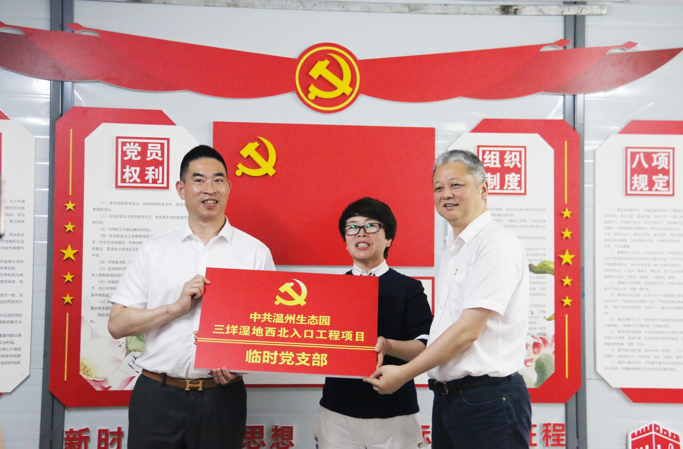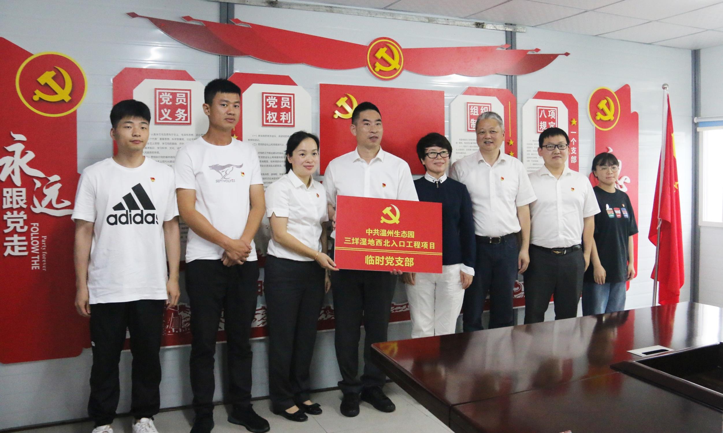 為充分發揮黨建引領的積極作用,有效助推項目建設,6月1日上午,在生態園三垟濕地西北入口工程施工現場,中共溫州生態園三垟濕地西北入口工程項目臨時聯合黨支部正式掛牌成立。溫州市委黨史學習教育督導組、溫州生態園管委會相關領導,百盛聯合集團有限公司及項目參建各方黨員代表、臨時聯合黨支部黨員等20余人參加了會議。