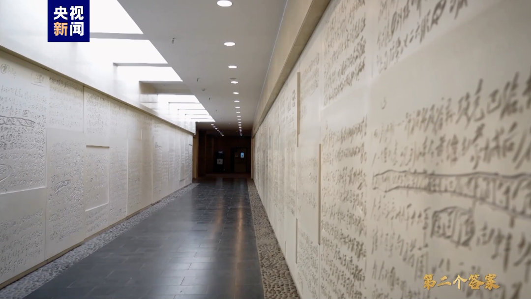 在河北省平山縣西柏坡紀(jì)念館有一條電報(bào)長廊,兩側(cè)墻面上鐫刻著37封電報(bào)手稿。